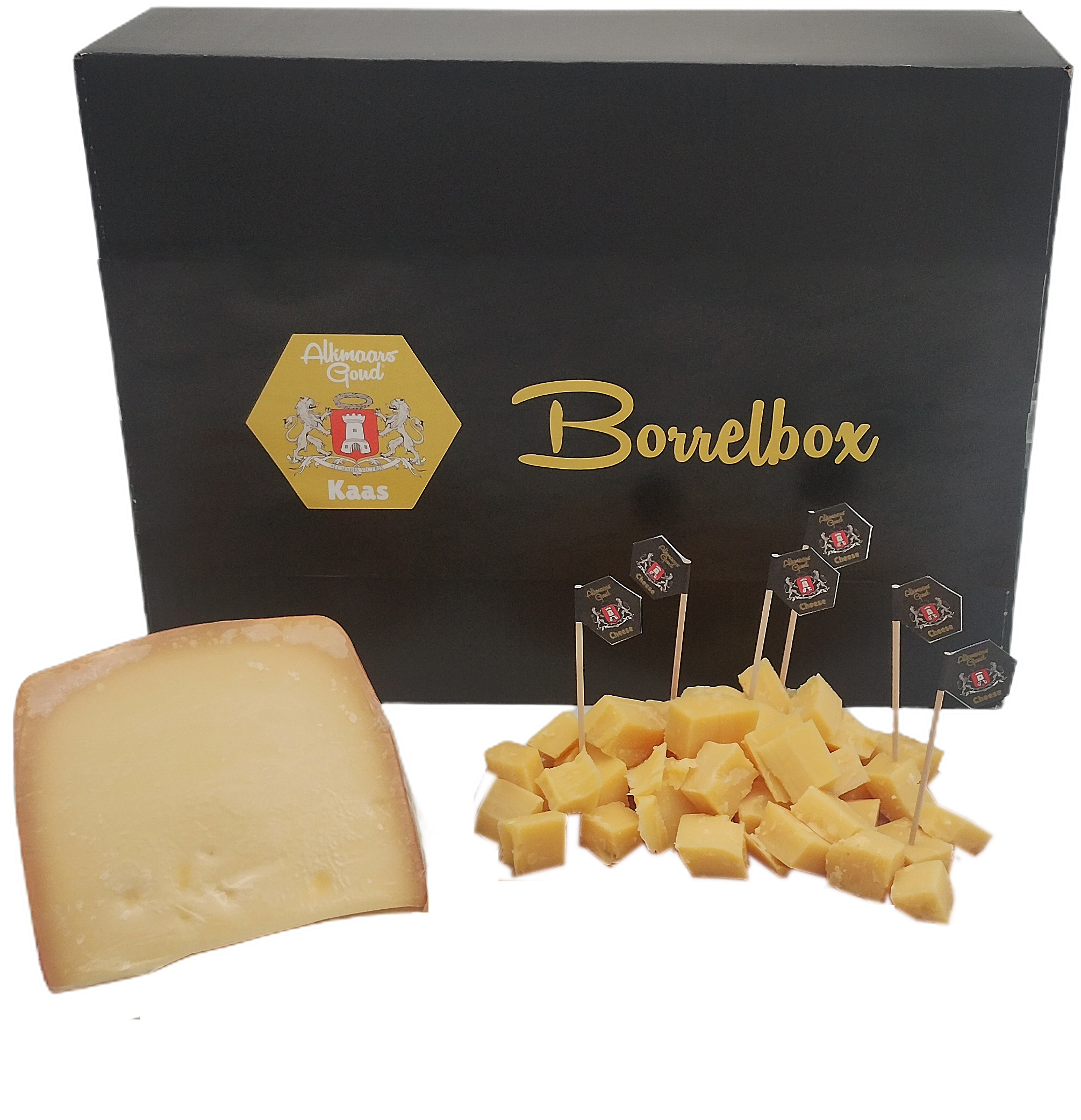 - 1 borrelbox bestaat uit 2 kg kaas,